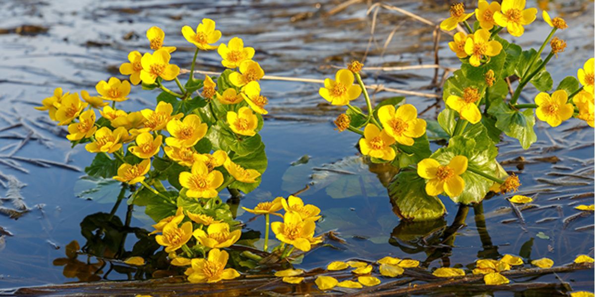 Le populage des marais (Caltha palustris), également connu sous le nom de souci d'eau, est une plante vivace semi-aquatique appartenant à la famille des Renonculacées. Son habitat naturel se situe dans les zones humides et les marécages des régions tempérées de l'hémisphère Nord. Cependant, avec la diminution progressive des zones humides, son abondance a tendance à décliner. Grâce à une rusticité remarquable, cette plante peut résister à des températures allant jusqu'à -20°C.