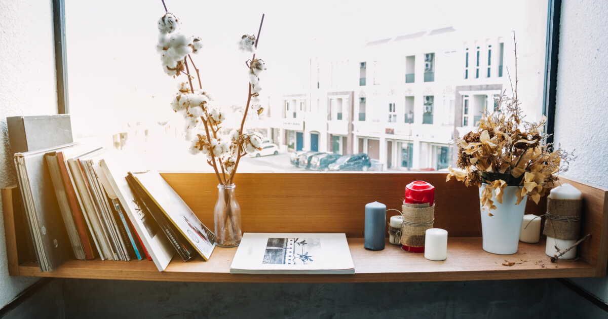 Les espaces situés entre le plafond et les fenêtres peuvent être une véritable aubaine pour le rangement. Pourquoi ne pas en profiter ? Imaginez une étagère qui se fixe juste au-dessus de votre tringle à rideau. Cette création, conçue par une talentueuse artisane sur Etsy, se fixe grâce à des équerres métalliques et permet de glisser une tringle à rideau sans encombre. Cela vous permettra d'y placer des objets de décoration, des plantes en cascade ou même des livres qui apportent une touche décorative tout en étant pratiques.