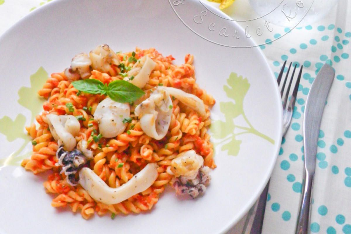 Recette : Salade de pâtes aux seiches grillées et pesto de poivron