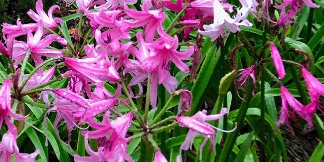 En fin d'été, elle produit des feuilles rubannées, vert brillant, qui sont à la fois longues et semi-persistantes. Ces feuilles disparaissent durant les mois les plus chauds (juillet et août), tandis que de hautes tiges, atteignant jusqu'à 60 cm, émergent, portant des fleurs étoilées d'un rose délicat. Les tépales de ces fleurs sont légèrement ondulés et se présentent en ombelles. Selon les cultivars, ces fleurs peuvent varier en taille et en forme, offrant un spectacle coloré durant les mois de septembre à octobre. Parfaites pour les bouquets, elles apportent une touche originale aux arrangements floraux.
