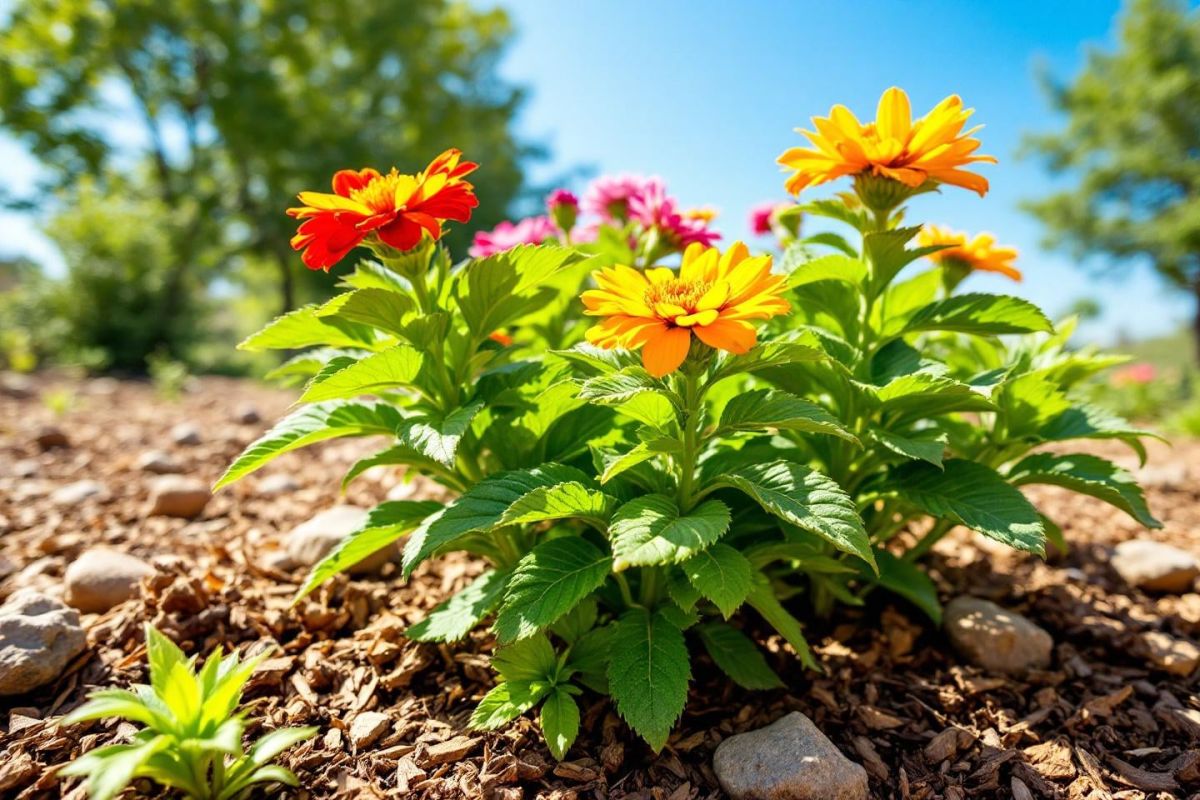 Pour optimaliser le potentiel de ces plantes, le paillage devient essentiel. Installer une couche de 8 cm de broyat de bois ou de copeaux au pied des végétaux s'avère efficace, qu'il s'agisse de jardins urbains ou en milieu rural. Cela diminue l'évaporation et maintient la fraîcheur du sol tout en contrôlant la pousse des herbes indésirables. Parallèlement, le groupement des plantations permet de créer des microclimats protecteurs pour les plantes plus fragiles.