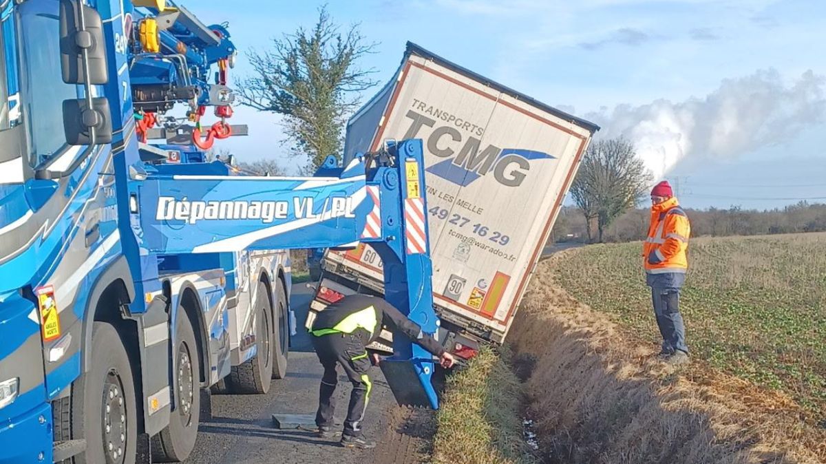 Les roues arrière d’un camion ont mordu le bas-côté d’une route départementale, à hauteur de la commune de Lhommaizé, alors qu'il tentait de croiser un autocar. Il a glissé dans le fossé.