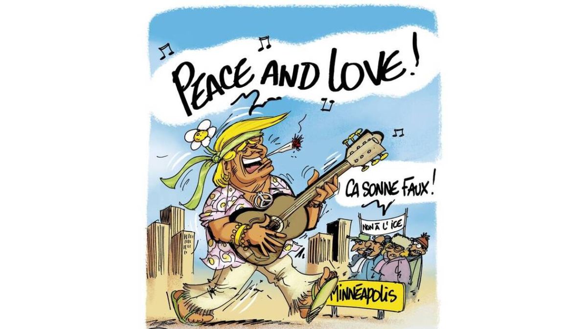 Le dessinateur Chaunu, qui illustre quotidiennement l'actualité pour Ouest-France, publie un nouveau dessin qui résume en un trait la crise politique née des récents épisodes controversés impliquant l'Immigration and Customs Enforcement (ICE) aux États-Unis. Le croquis met en scène le président Donald Trump adoptant une posture d'apaisement alors que derrière lui se déroule une mise en scène plus agressive des autorités chargées des expulsions et des contrôles.