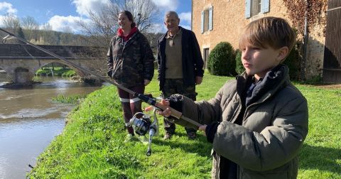 "Je lance et je mouline!" s'exclame Timéo en mimant les gestes appris, tandis que Jean-Pierre, son grand-père, le guide avec douceur. Accompagné par sa tante, Cécile, Timéo est impatient car cela fait des jours qu'il attend ce moment tant souhaité.